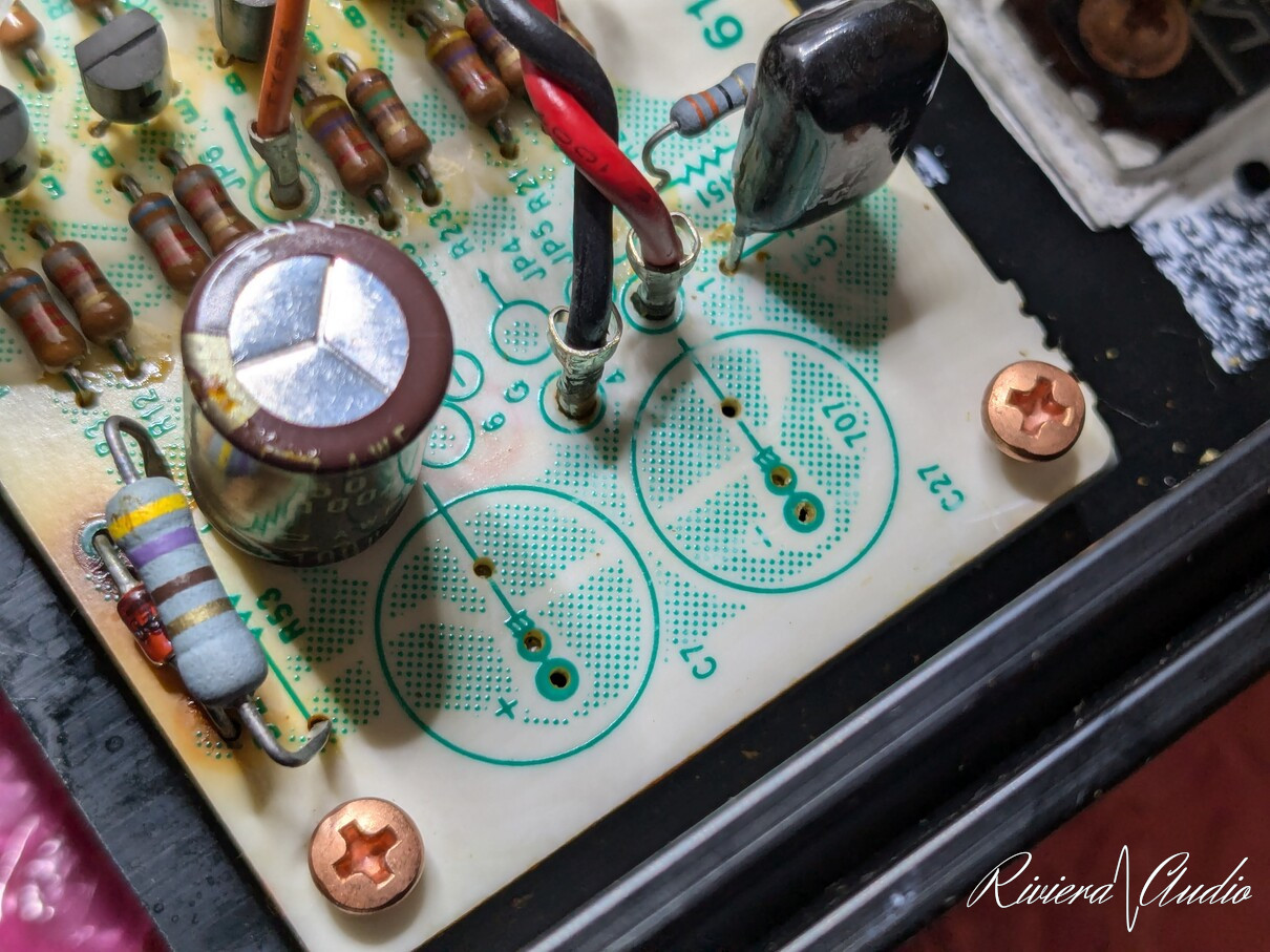 quatres condensateurs noyés dans la colle sont retirés. La colle est ôtée